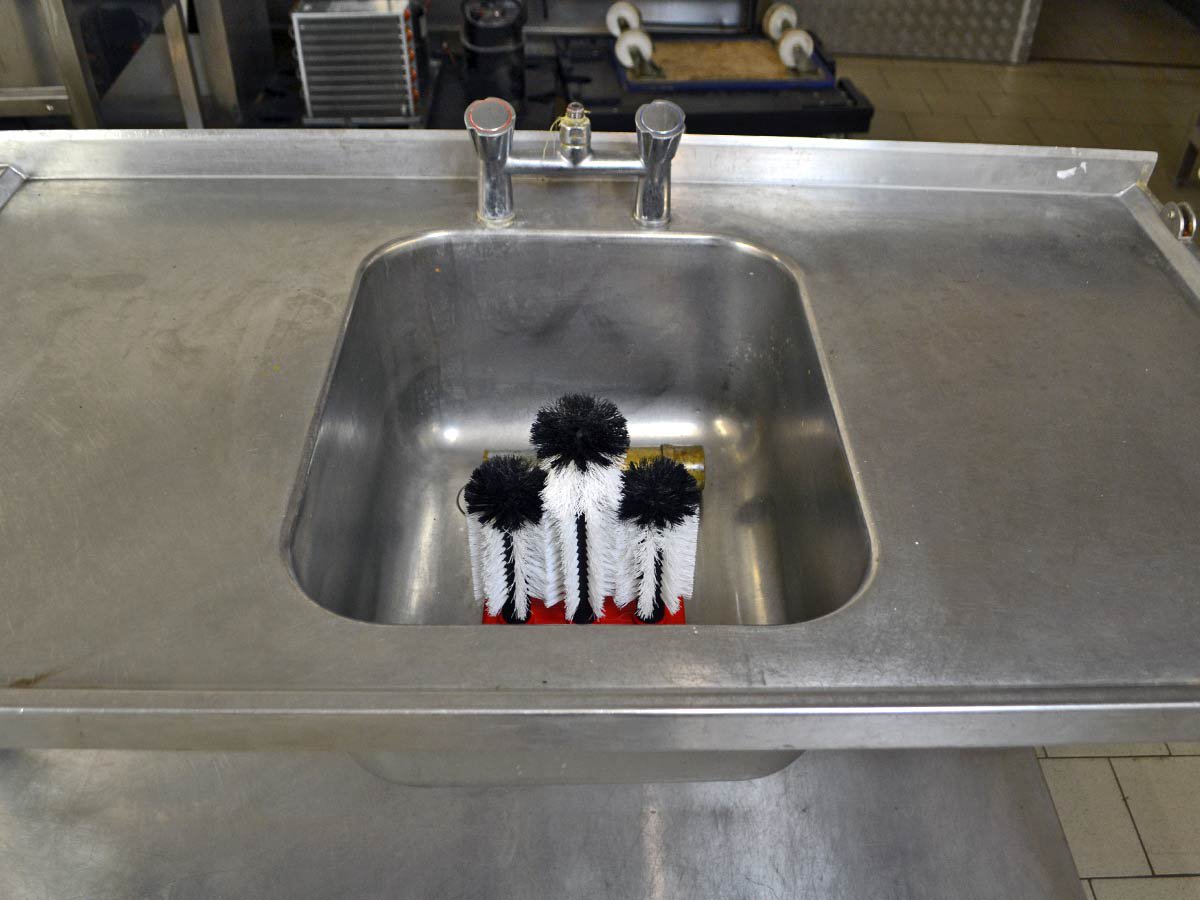 gebrauchter Arbeitstisch Edelstahl Spezialanfertigung Spülbecken rechts mit Mischbatterie
