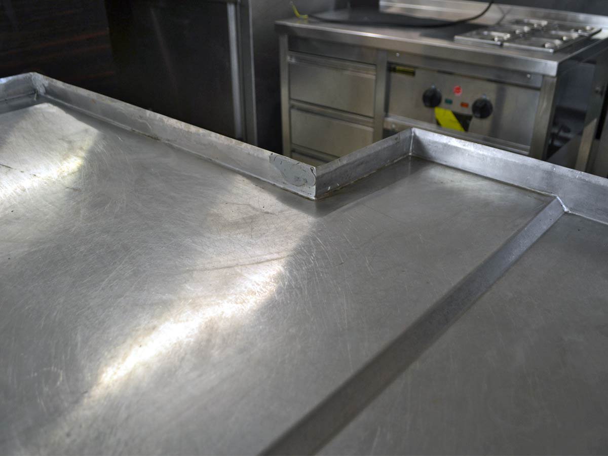 Arbeitstisch 215 x 92cm Edelstahl Spezialanfertigung Spülbecken rechts mit Mischbatterie