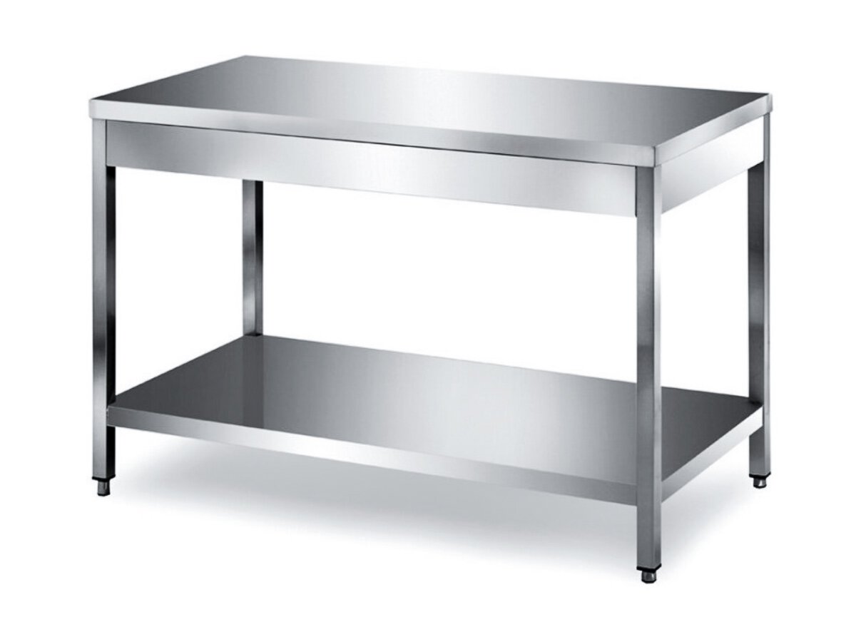 Edelstahl Arbeitstisch mit Grundboden, ohne Aufkantung, verschweißte Ausführung, verschiedene Breiten