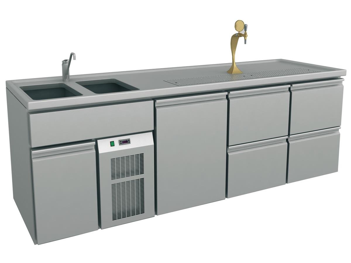 Ausschanktheke, Biertresen, BTH 2500x700x930 mm, 1 Tür, 4 Schubladen, 2 Spülbecken links