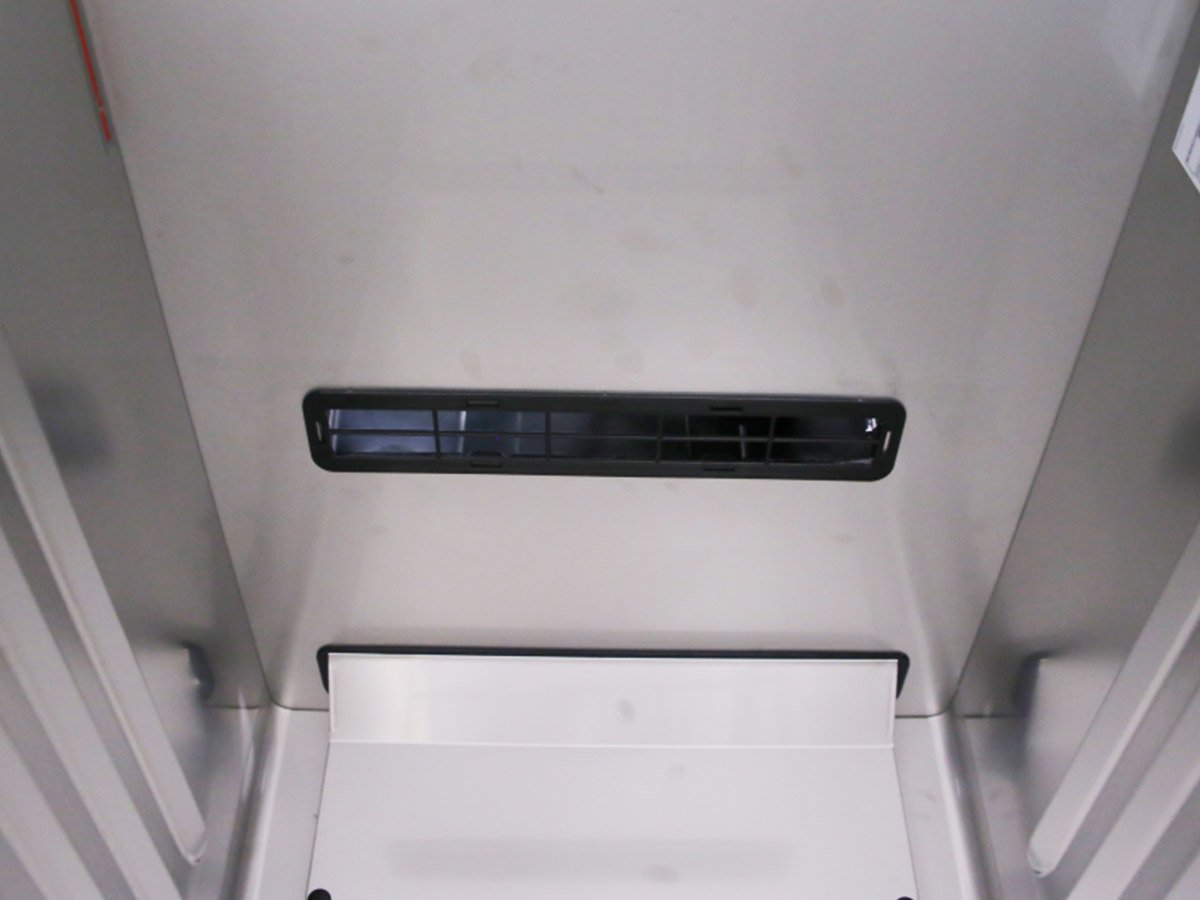 Der Innenraum verfügt über vorgeformten Auflageschienen zur Einbringung von maximal 24 Rosten GN 2/1 in einem Abstand von 55 mm. Tiefgezogener Innenboden mit abgerundeten Ecken als Wanne ausgebildet für maximale Hygiene. Glastür mit Schloss und Griffmulde unter 100° selbstschließend mit oberen Schleppscharnier. Automatische energiesparende Abtauung und energiesparende Heißgas-Tauwasserverdunstung sowie LED Innenbeleuchtung.