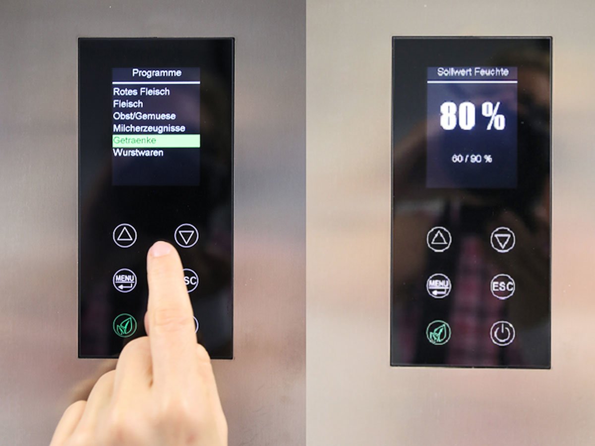 Die Vorteile für den Nutzer: großes Display an dem die momentane Kühlraumtemperatur schnell und ohne Mühe abgelesen werden kann. Ebenfalls sind die einzelnen Einstellungen auf dem Touch-Screen sichtbar. Hierzu zählen ausgewähltes Programm oder eingestellter Energie-Saving-Modus. Nicht zuletzt ist der Kühlschrank noch mit einer Türüberwachung ausgerüstet, der zeitgesteuert einen Summer aktiviert wenn die Glastür zu lange geöffnet ist.