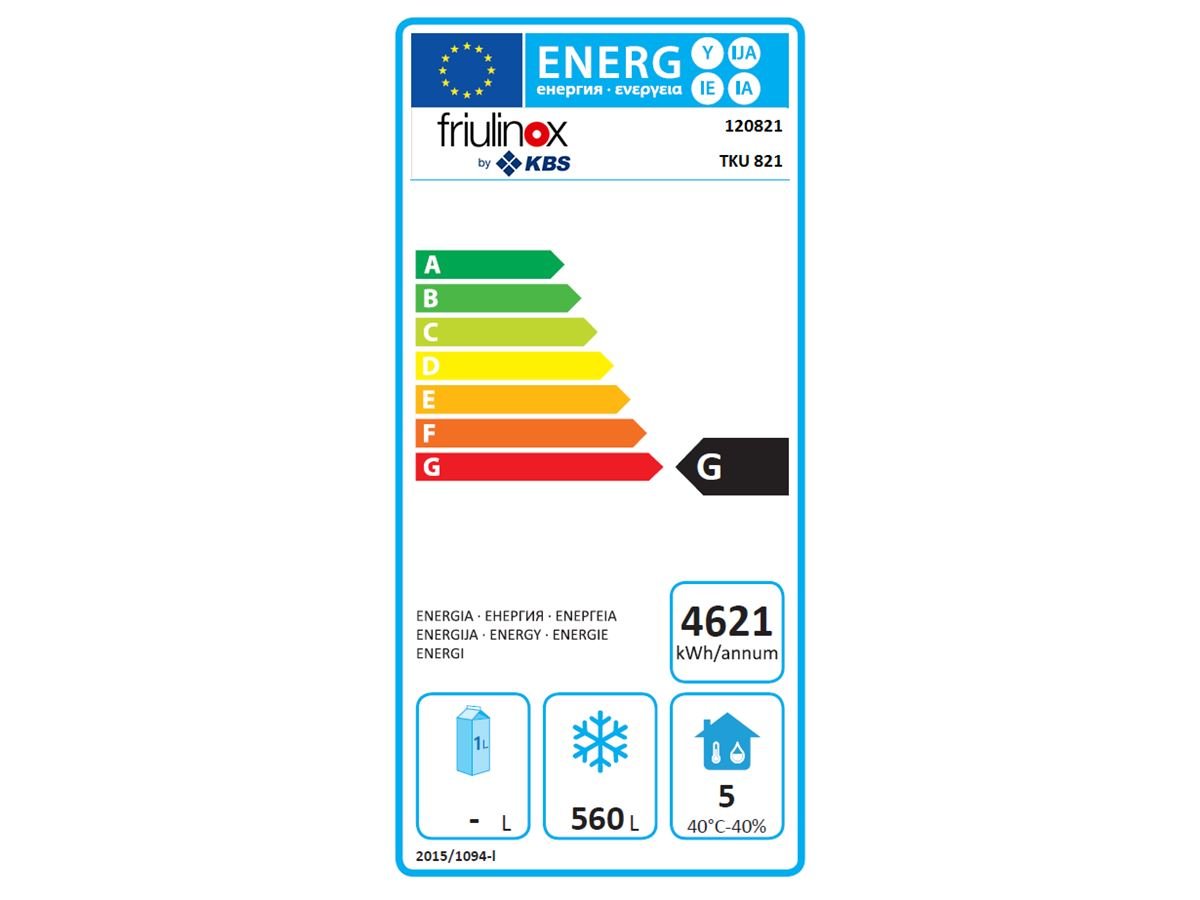 Mikroprozessorsteuerung mit 3 Fühlern. Diese patentierte Steuerung, inklusivem Programm "Dauerkälte", reguliert die Temperatur mit extremer Genauigkeit. Das Gerät besitzt zwei Platinendisplays zwecks leichter Programmierung und Kontrolle der Temperatur, die Steuerung ist für HACCP-geeignet, zur Aufzeichnung der Temperaturalarme, mit Summer und Speicher. Maschinenfachblende klappbar, dadurch ist eine schnelle Reinigung des Kondensators möglich. An der Rückwand befinden sich Luftleitbleche zwecks Optimierung der Kälteverteilung, selbstschließende Tür mit Zylinderschloss, Türanschlag rechts, wechselbar mit Kit, wechselbare, gesteckte Magnetdichtung, Tür mit ergonomisch geformter und eingelassener Griffleiste, automatische Abtauung und energiesparende Tauwasserverdunstung, Schrank mit höhenverstellbaren Füßen aus CNS, Innenraum mit abgerundeten Ecken und Bodenablauf, Rasterleisten und U-Schienen sind zwecks optimaler Reinigung ohne Werkzeug herausnehmbar.