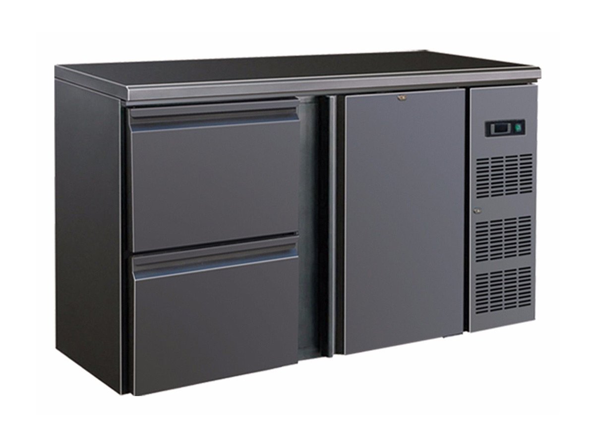 Umluft Flaschenkühltisch, 350 Liter, 1 Tür, 2 Schubladen, schwarz