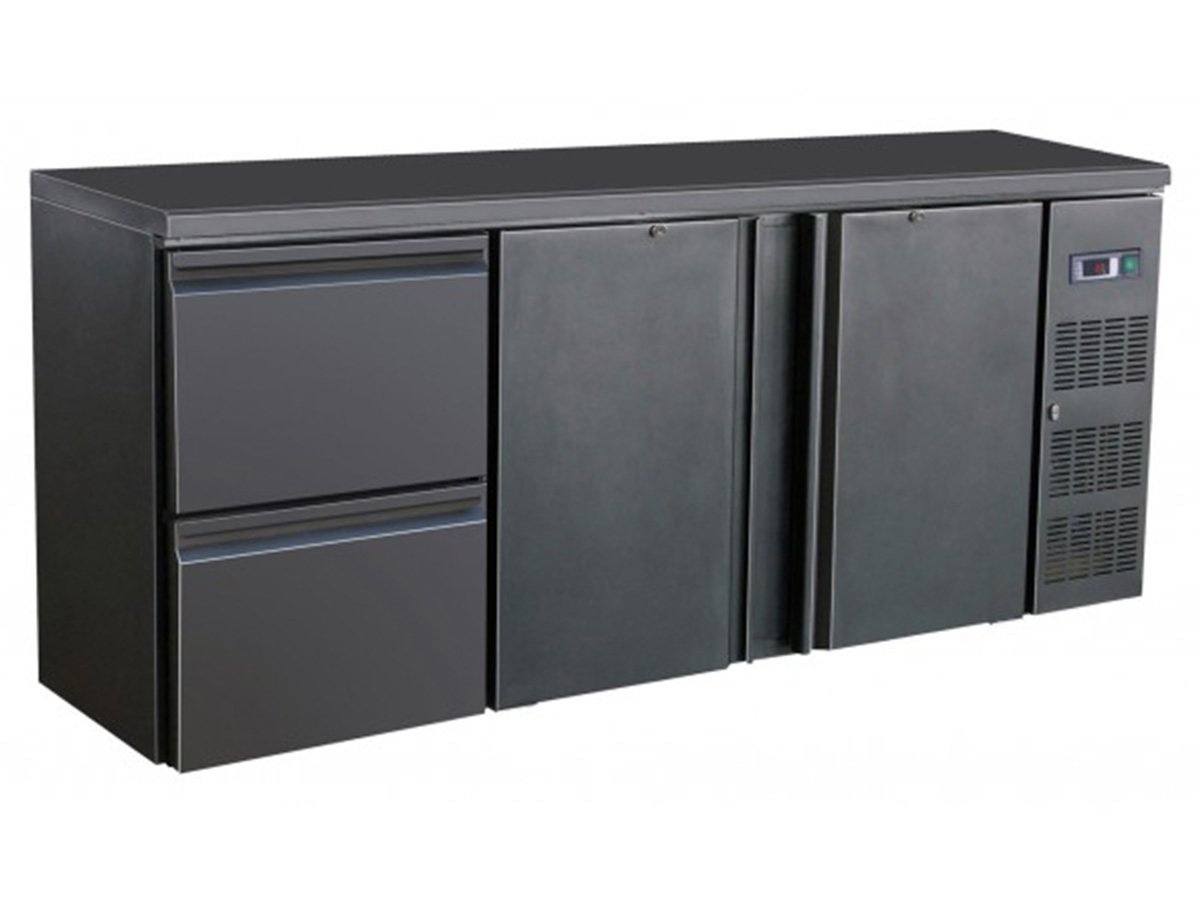 Flaschenkühltisch, schwarz, 2 Türen 2 Schubladen, Inhalt 537 Liter, 2002 x 513 x 860 mm