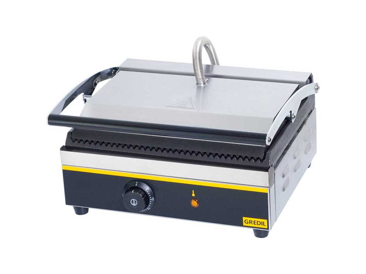 - oben und unten gerillte Gusseisenplatten mit Keramikbeschichtung