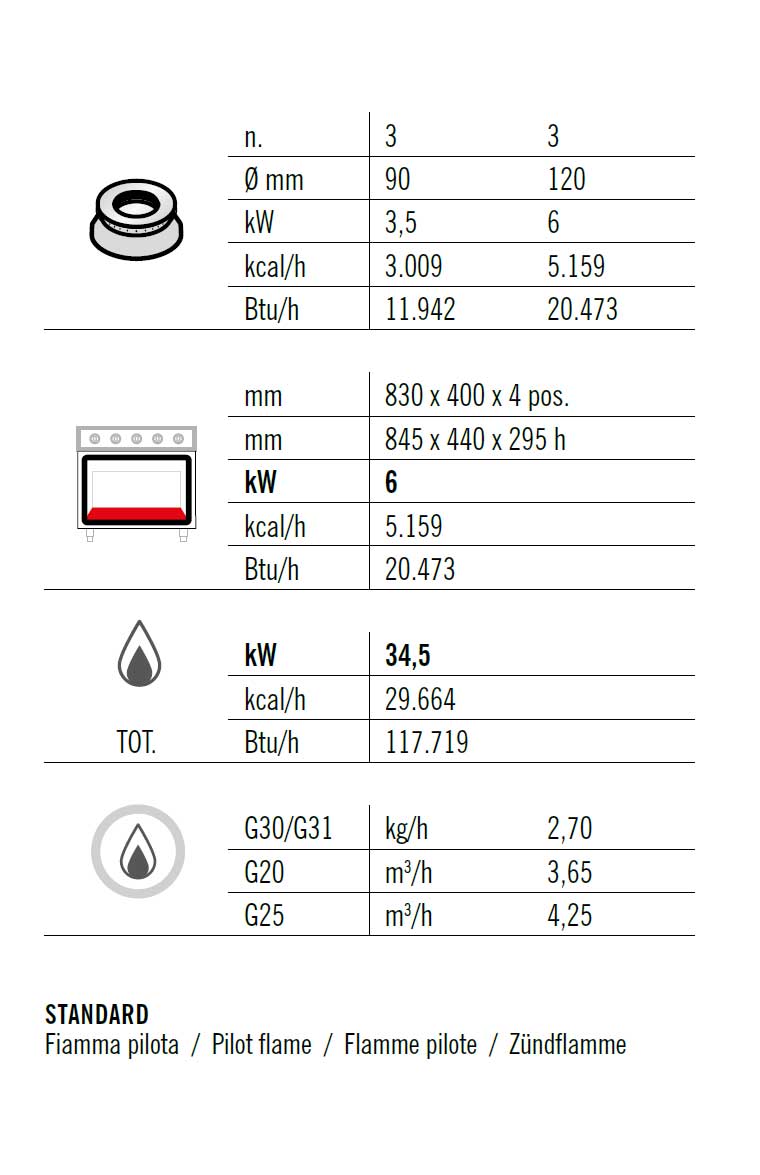 PLUS 600 SERIE ECO POWER zeichnet sich durch ihre Brenner mit 120 mm Durchmesser und 6 kW Leistung sowie 90 mm Durchmesser und 3 kW Leistung aus, zur Gewährleistung maximaler Anwendungsvielfalt. Separate Topfträger aus emailliertem Gusseisen, besonders benutzerfreundlich und beständig gegenüber mechanischen und Wärmebelastungen. Backöfen komplett aus rostfreiem Edelstahl, als Gas- oder Elektromodell sowie statisch oder als Konvektionsbackofen erhältlich.