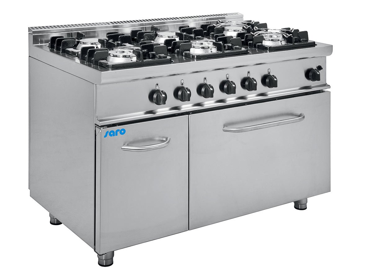 - 6 Brenner Gas-Herd mit übergroßem 120 Ltr. Gasbackofen (2/1 GN)