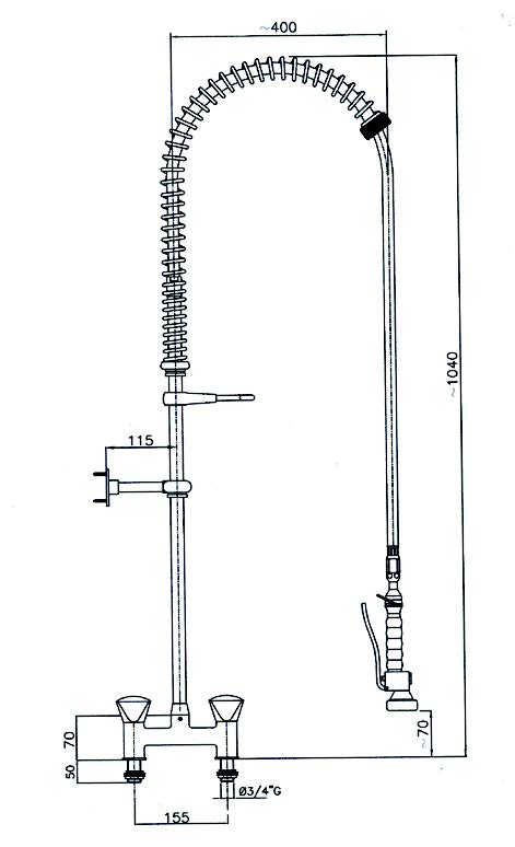 Geschirrwaschbrause DN17 mit 2-Loch-Wandmischbatterie, inkl. Wandhalterung