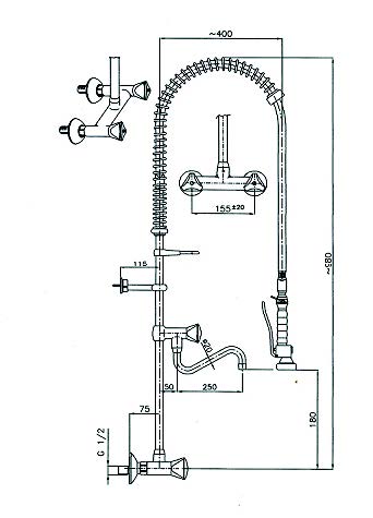 Geschirrwaschbrause DN7 mit 2-Loch-Wandmischbatterie und separatem Wasserhahn, inkl. Wandhalterung