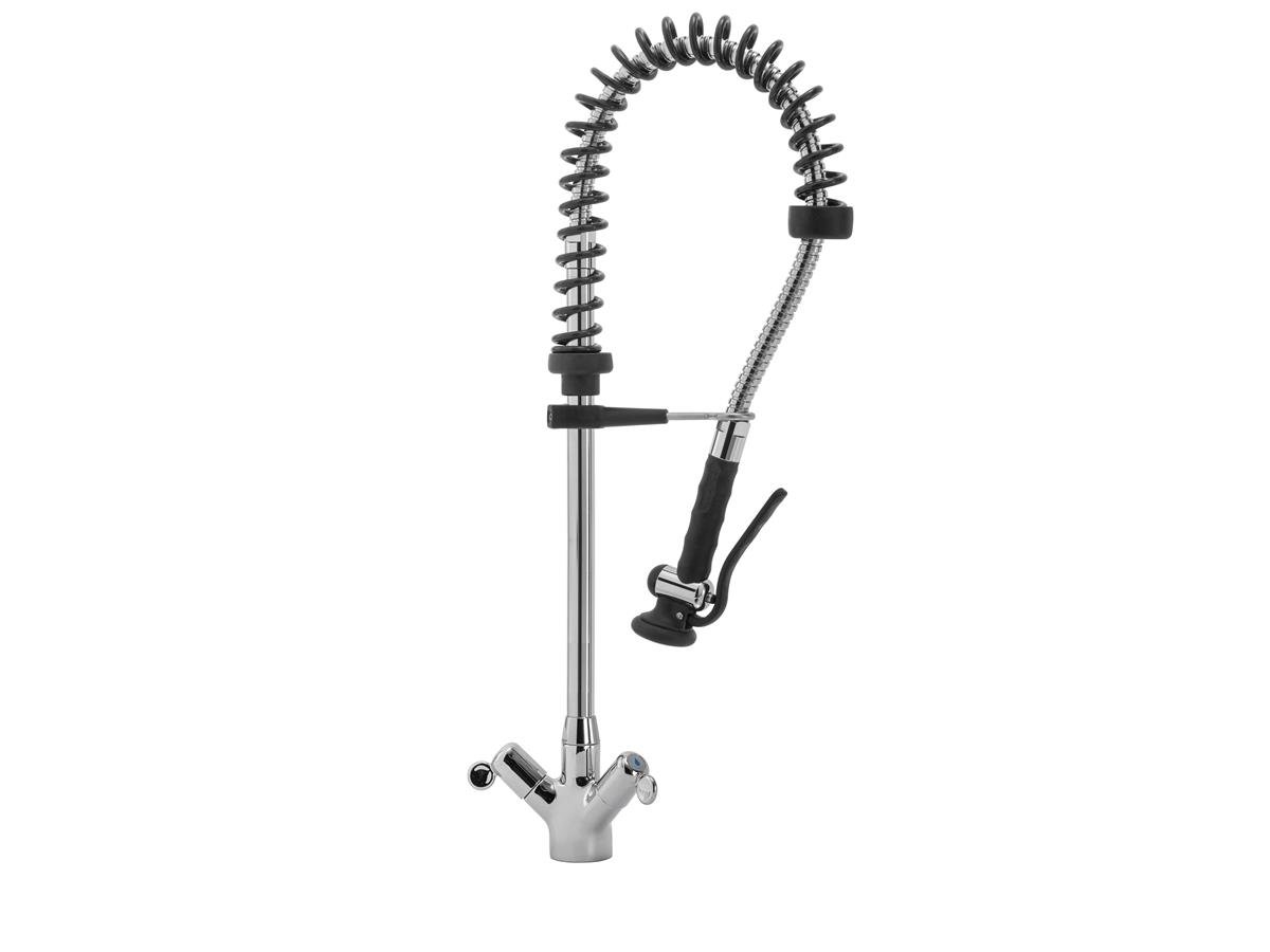 Bei dieser Armatur ist die Spiralfeder aus biegsamen Stahl gefertigt. Die Beschichtung mit grauem Polymaid PA 11 (Rilsan auf Biobasis) und Epoxydlack führen zu einer hohen Rostbeständigkeit der Spiralfeder. Durch den verbauten Schutzring wird die Reibung zwischen der Feder und dem Flexschlauch vermindert. Der Schlauch besteht aus EPDM-Gummi (lebensmittelgeeignet) und ist somit für Trinkwasser zertifiziert. Die Ummantelung mit doppeltem Edelstahlgeflecht und einer transparenten, thermoplastischen Isolierung sorgen für maximale Hygiene und eine einfache Reinigung. Durch die auf dem Standrohr (hergestellt aus Edelstahl AISI 304) vormontierten Armaturen wird eine maximale Stabilität und eine perfekte Ausrichtung der Brausegarnitur erzielt. Auch bietet das Edelstahlrohr eine weitaus höhere Hygiene als die herkömmlichen Rohre aus verchromtem Messing.