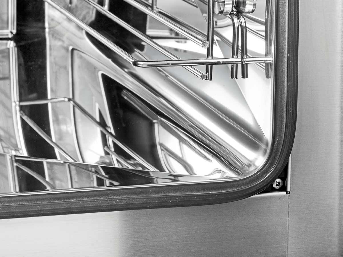- Eigenschaften: Doppeltürverglasung / Abgerundete Backkammer / Auflageschienen herausnehmbar