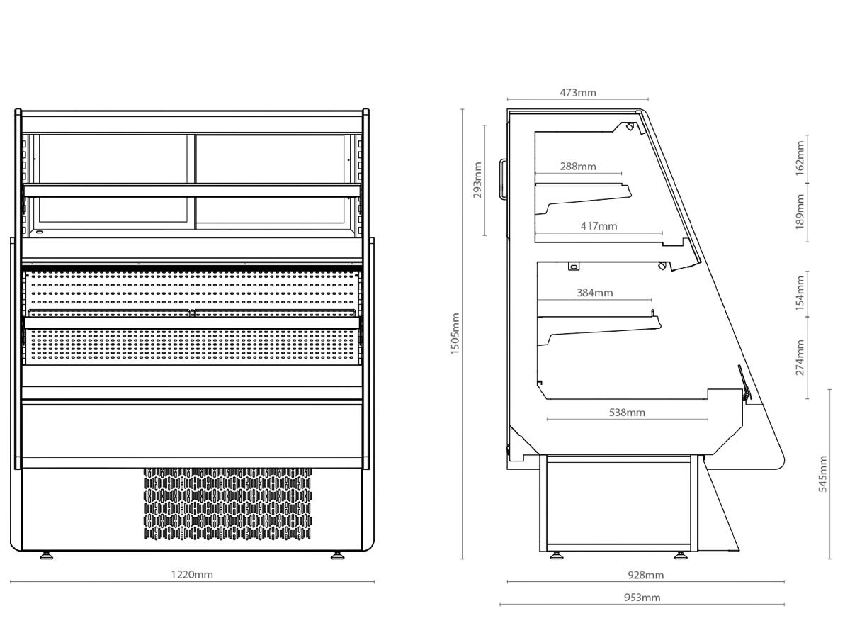 - Oberer Bereich als Verkaufsvitrine gekühlt oder ungekühlt nutzbar