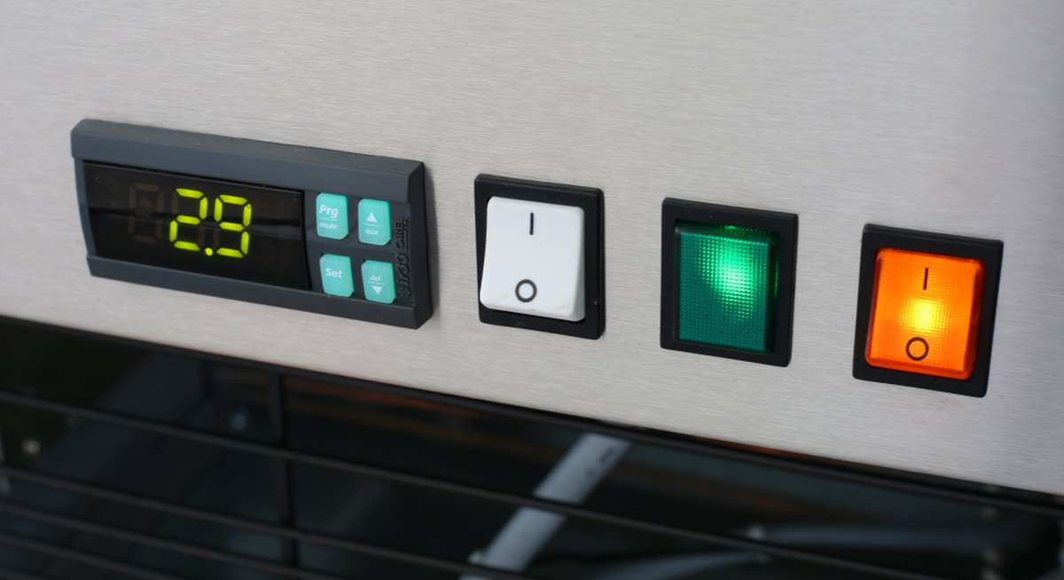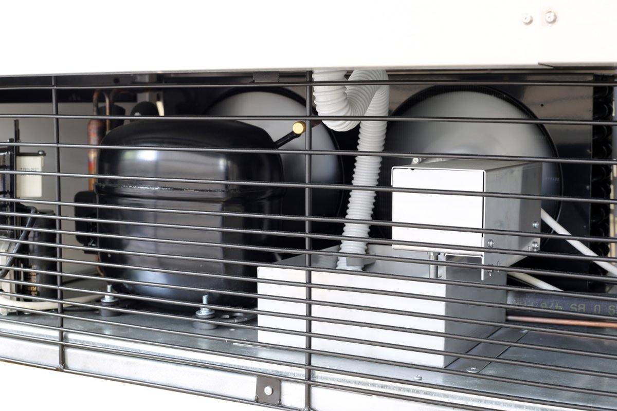 Direkten Zugriff erhalten Sie im oberen Teil der Kühlvitrine von hinten durch zwei vorhandene Schiebetüren. Die Einstellung der Kälte erfolgt über zwei getrennte elektronische Steuerungen mit digitaler Anzeige, zur Einstellung der oberen und unteren Temperatur im Wandkühlregal.