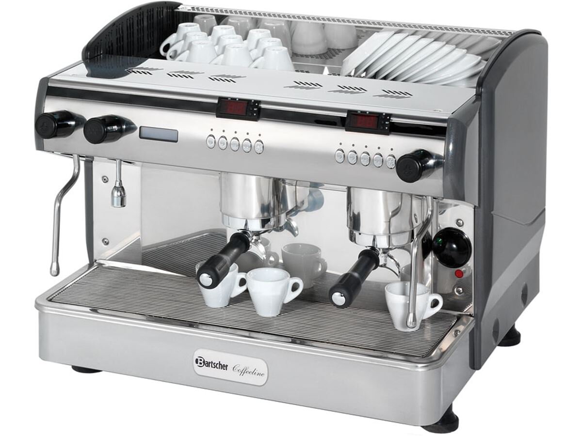 Bartscher Siebträgermaschine, 2-gruppig, 2 Dampfhähne, mit separatem 1,5 Liter Kessel pro Brühgruppe