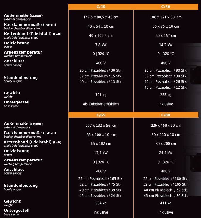 Der Clou der Kettenbandöfen: Das Gehäuse erwärmt sich auf maximal 40 °C Außentemperatur und gleiche Modelle können gestapelt werden (bis zu max. 3 Geräten).