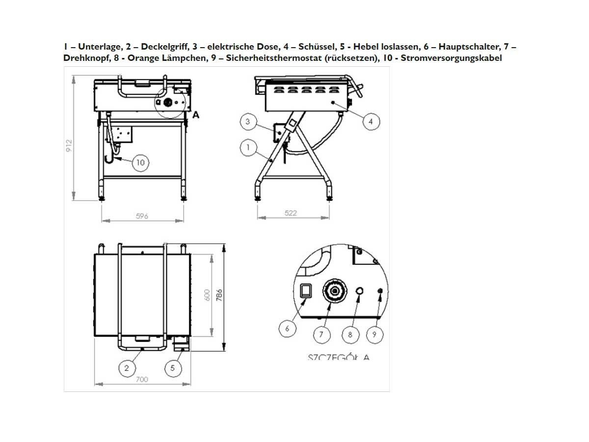 Kippbratpfanne Elektro, 100 Koteletts/h, BTH 700 x 786 x 912 mm