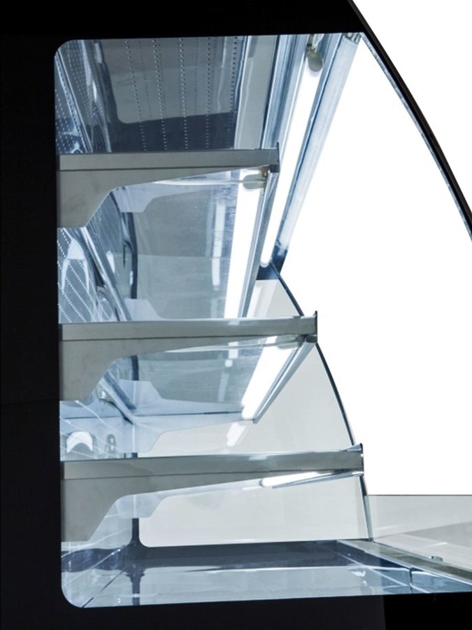 - Kühltheke zur Präsentation von Getränken, belegten Brötchen, Snacks, Keksen, Kuchen, Torten etc.