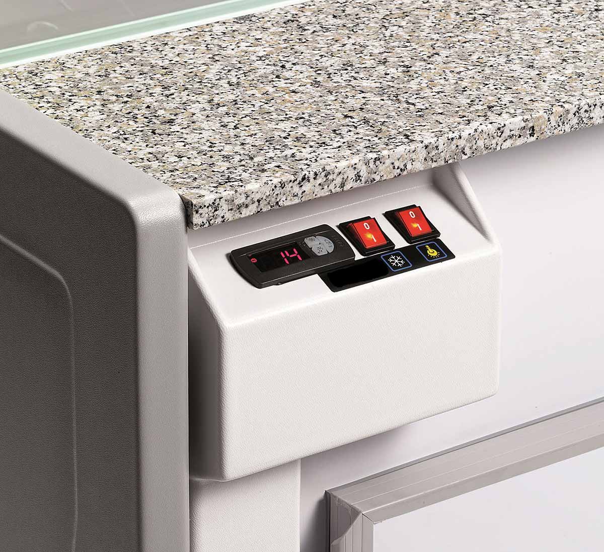 - Je nach Breite der Kühltheke mit 1-3 Kühlfächern