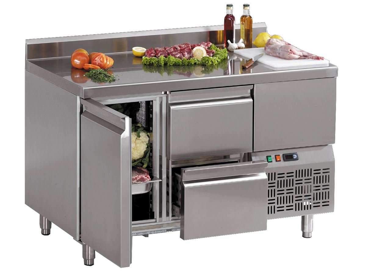 Kühltisch, 1 Tür + 2 Schubladen gekühlt, Umluftkühlung, 1320 x 700 x 850 mm