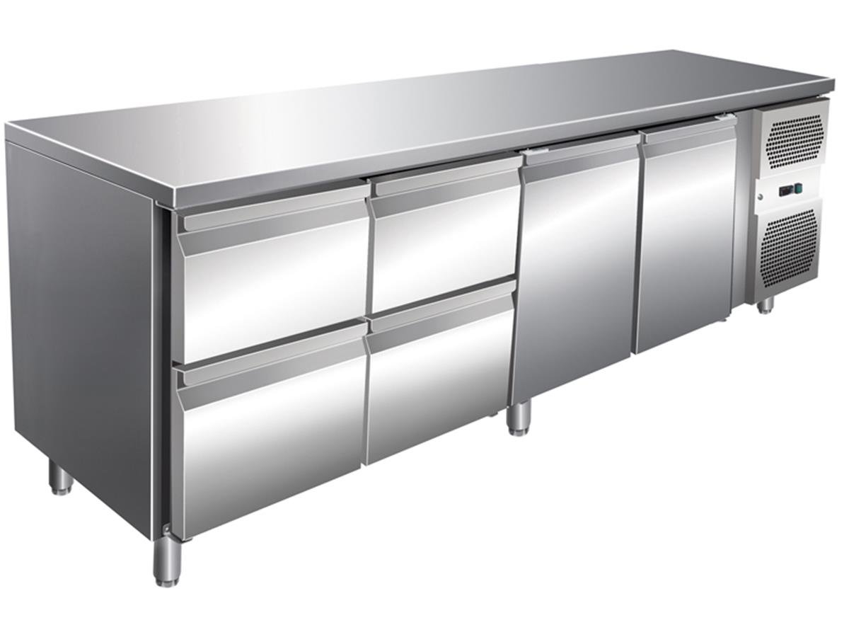 Edelstahl Kühltisch mit 2 Türen 4 Schubladen GN 1/1 - ohne Aufkantung - für Gastronomie