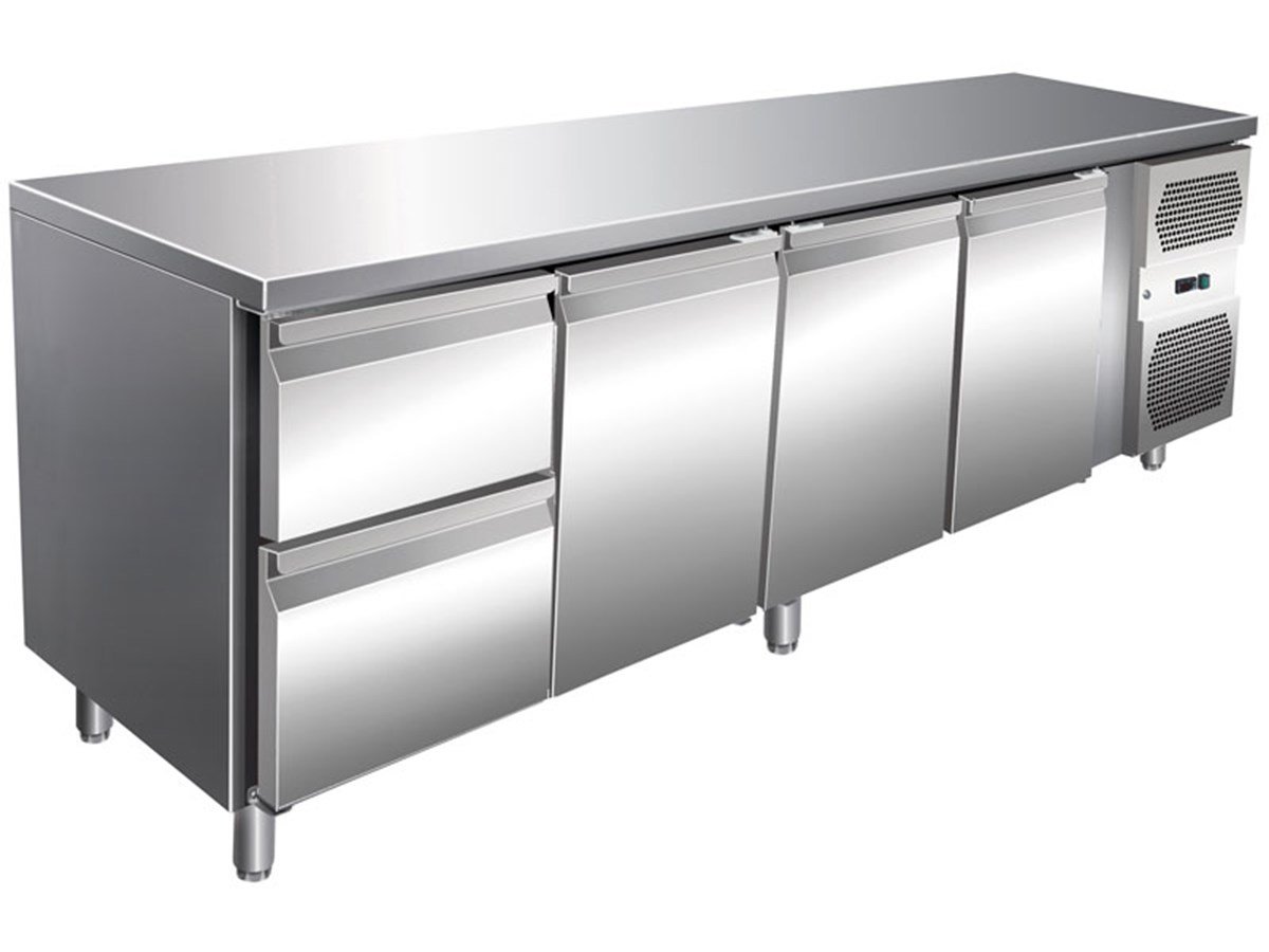 Edelstahl Kühltisch mit 3 Türen 2 Schubladen GN 1/1 - ohne Aufkantung - für Gastronomie