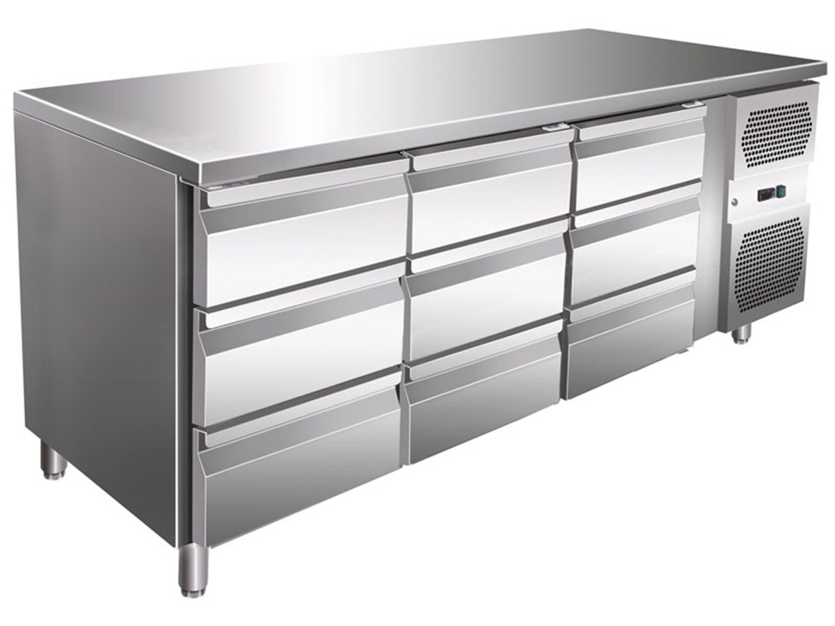 Edelstahl Kühltisch mit 9 Schubladen - mit oder ohne Aufkantung