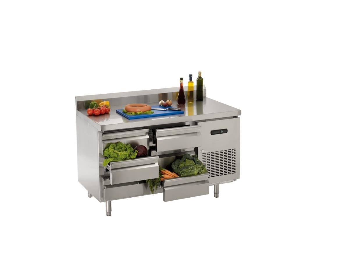 Kühltisch mit Aufkantung 100mm,6 Schubladen, Inhalt: 282 Liter, 1355x700x860mm