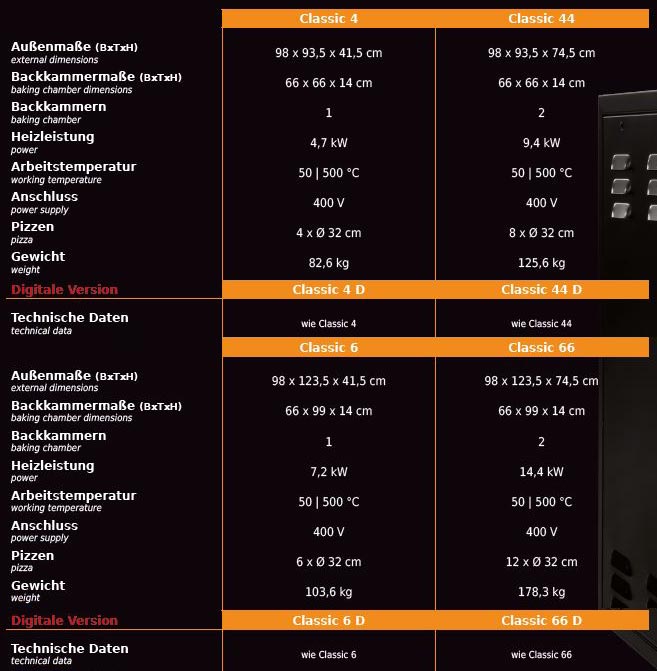 - jede Backkammer mit 2 voneinander getrennten Thermostaten ausgestattet