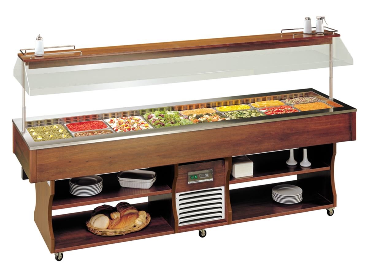 Salat-, Frühstücks- und Dessertbuffet mit elektrischer Haubenbetätigung