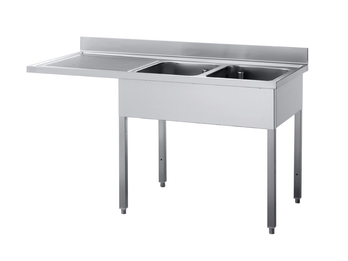 Edelstahl Spültisch mit 2 Becken und Abtropffläche