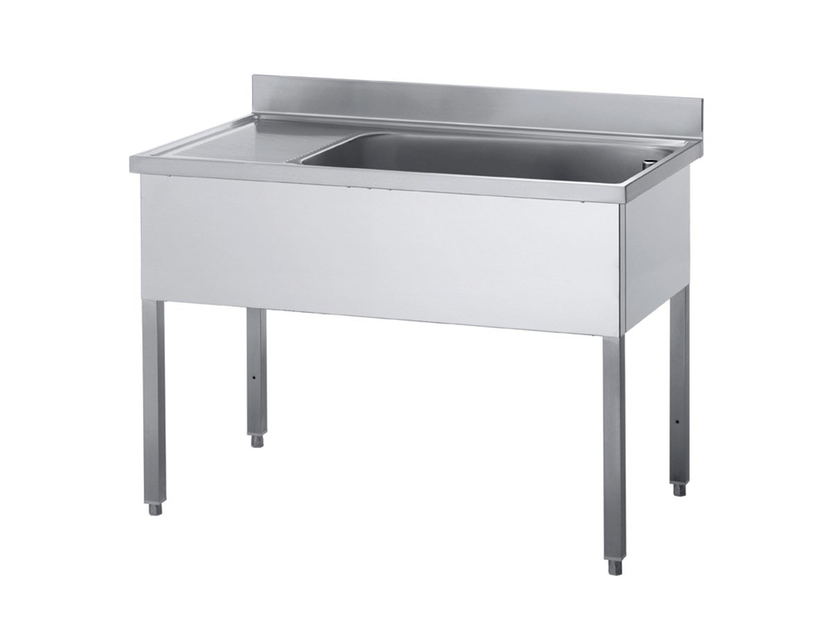 Edelstahl Spültisch mit einem Becken rechts und Abtropffläche für Gastronomie