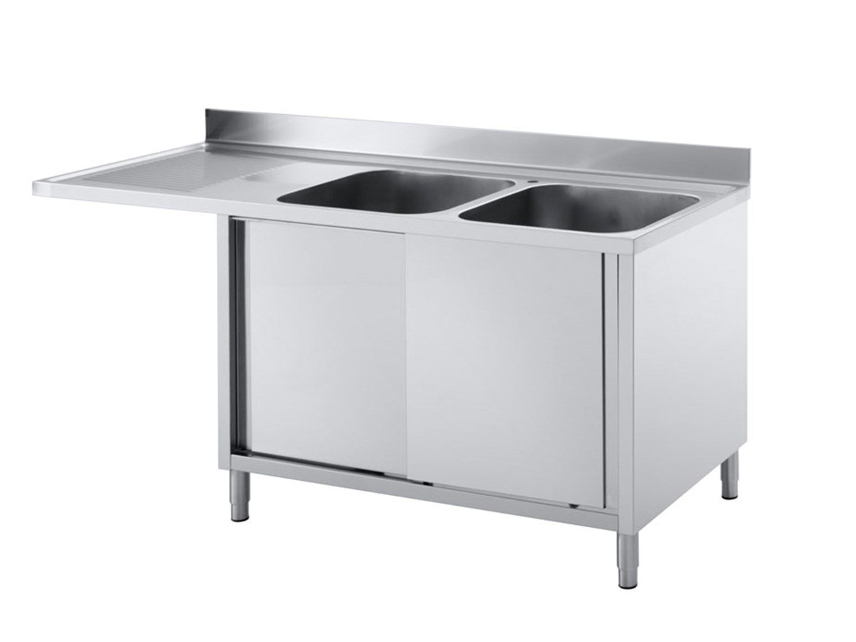Edelstahl Spülzentrum mit 2 Becken und Schiebetüren