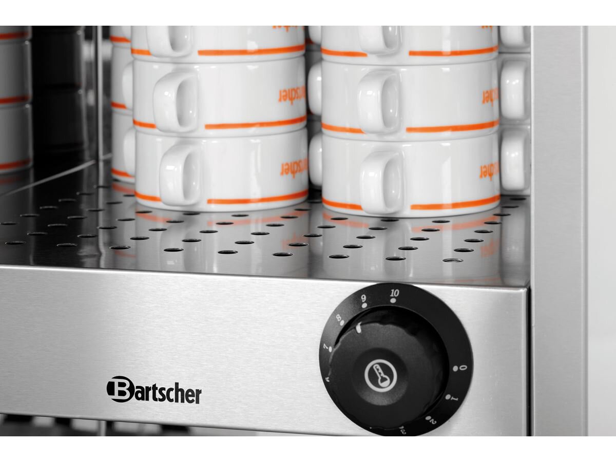 Vorgewärmte Tassen für mehr Kaffeegenuss ? Die getrennt schaltbare Wärmezufuhr lässt sich für beide Ebenen stufenlos regulieren.