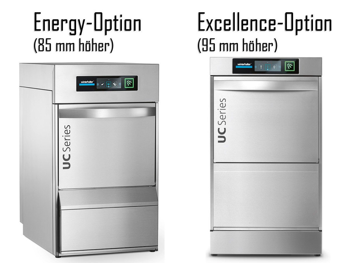 - Umluftwärmerückgewinnung "Energy" (85 mm höher, Energieeinsparung bis zu 0,1 kWh pro Spülgang, beeinflusst Programmlaufzeiten und Temperaturen - der Betreiber muss dafür Sorge tragen, dass die Solltemperaturen eingehalten werden.)