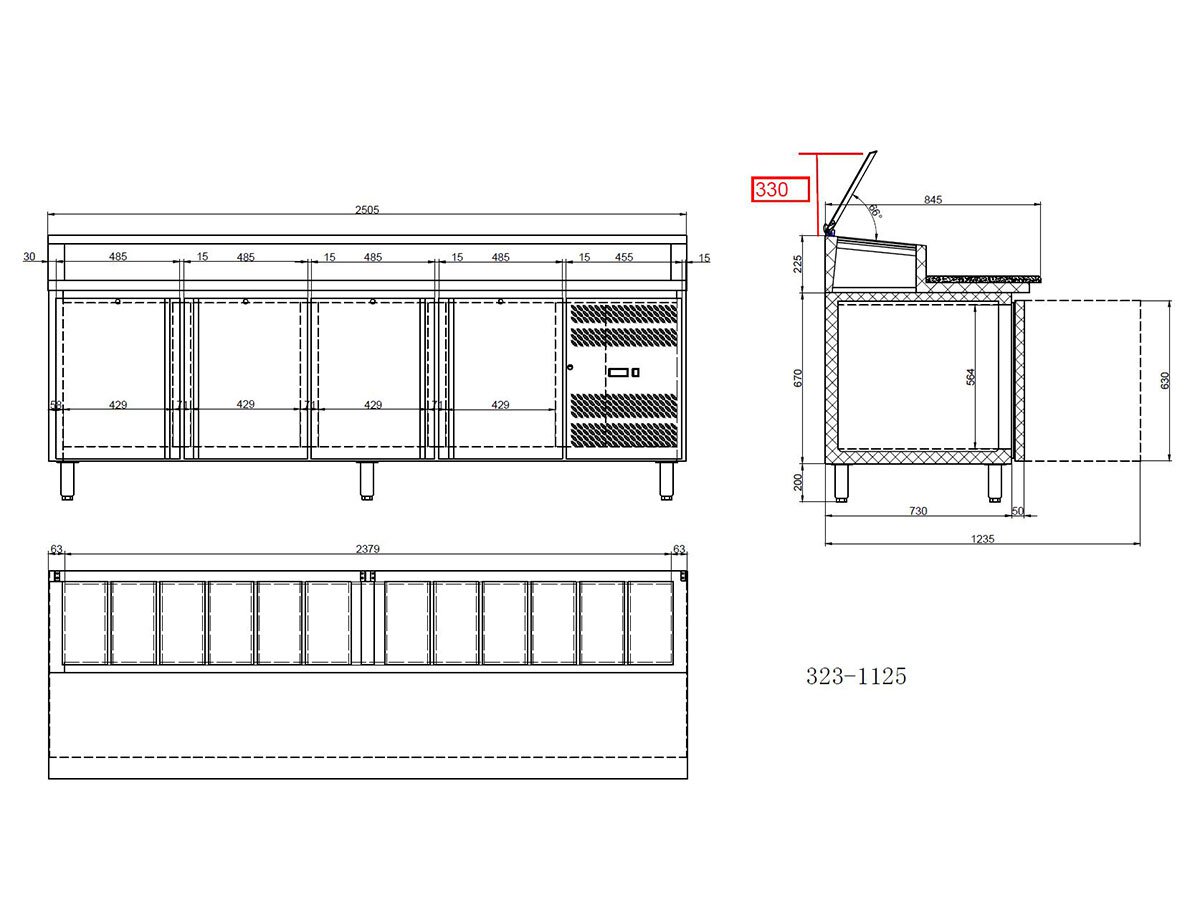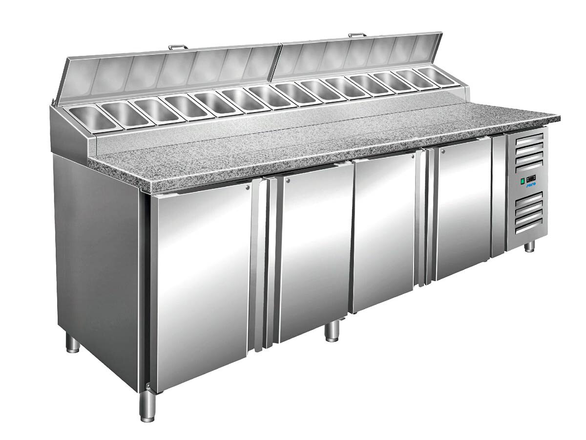 Pizzakühltisch Pizzatisch Zubereitungstisch mit Granitarbeitsplatte - ideal für Pizzeria / Gastronomie